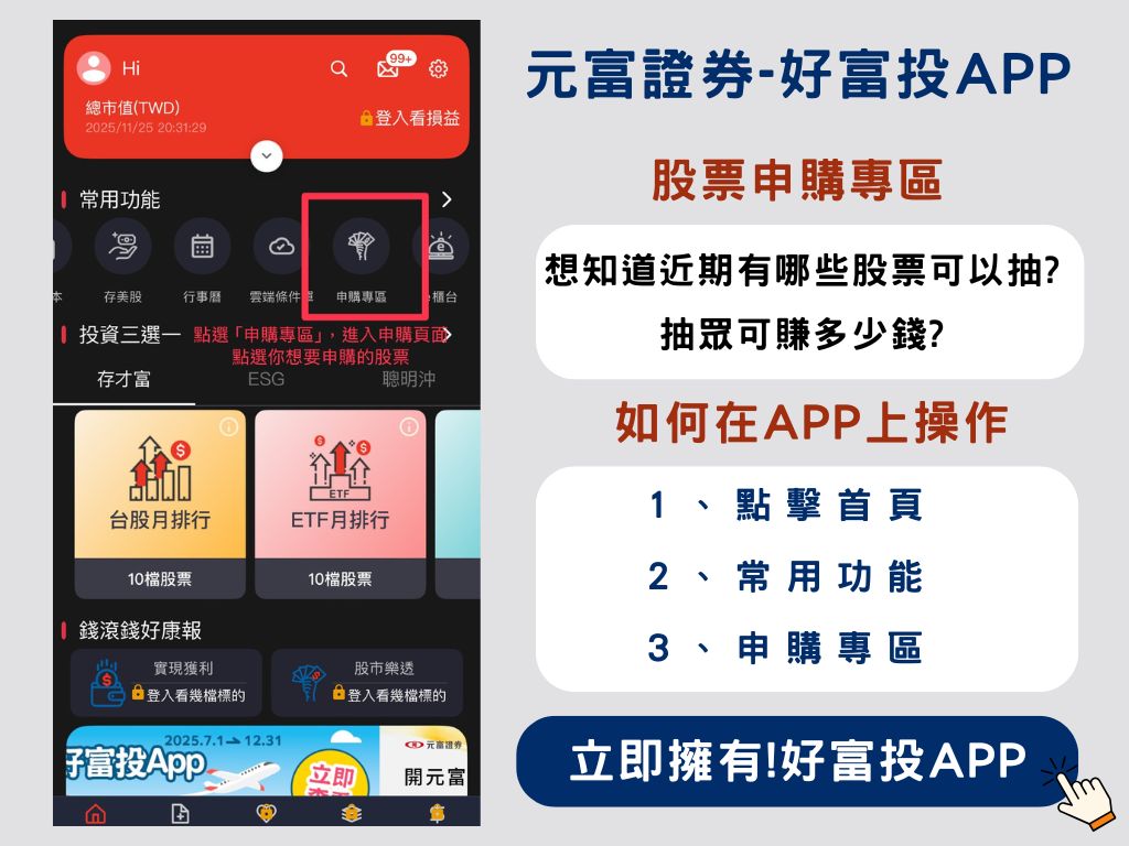 📌 簡單說:以比上市行情更便宜的價格買到股票 → 上市後有機會賺價差。