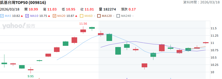 截至 2026/02/28 附近公開資料,009816 規模約 540.87 億元,2026/03/18 市價約 11.01 元,2026/03/17 淨值約 11.00 元,折溢價約 0.09%。這代表 009816 雖然成立不久,但市場接受度已經不低,流動性與規模都有一定基礎。