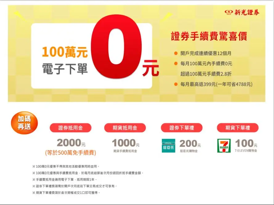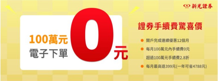隨著 2026 年數位金融普及,台灣證券市場正式迎來「0 手續費」新時代。新光證券推出震撼市場的「電子下單 100 萬內 0 手續費」方案,讓投資成本降到接近零,這對於重視手續費折扣的投資人,無疑是一個極佳的選擇。選擇一個低成本的工具,是投資人累積財富的首要步驟。