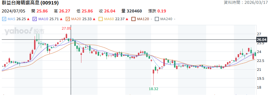 第二,00919 的產業結構偏向金融與航運,因此如果市場風格轉向成長股,或者金融、航運股進入相對弱勢區間,ETF 表現也可能不如預期。